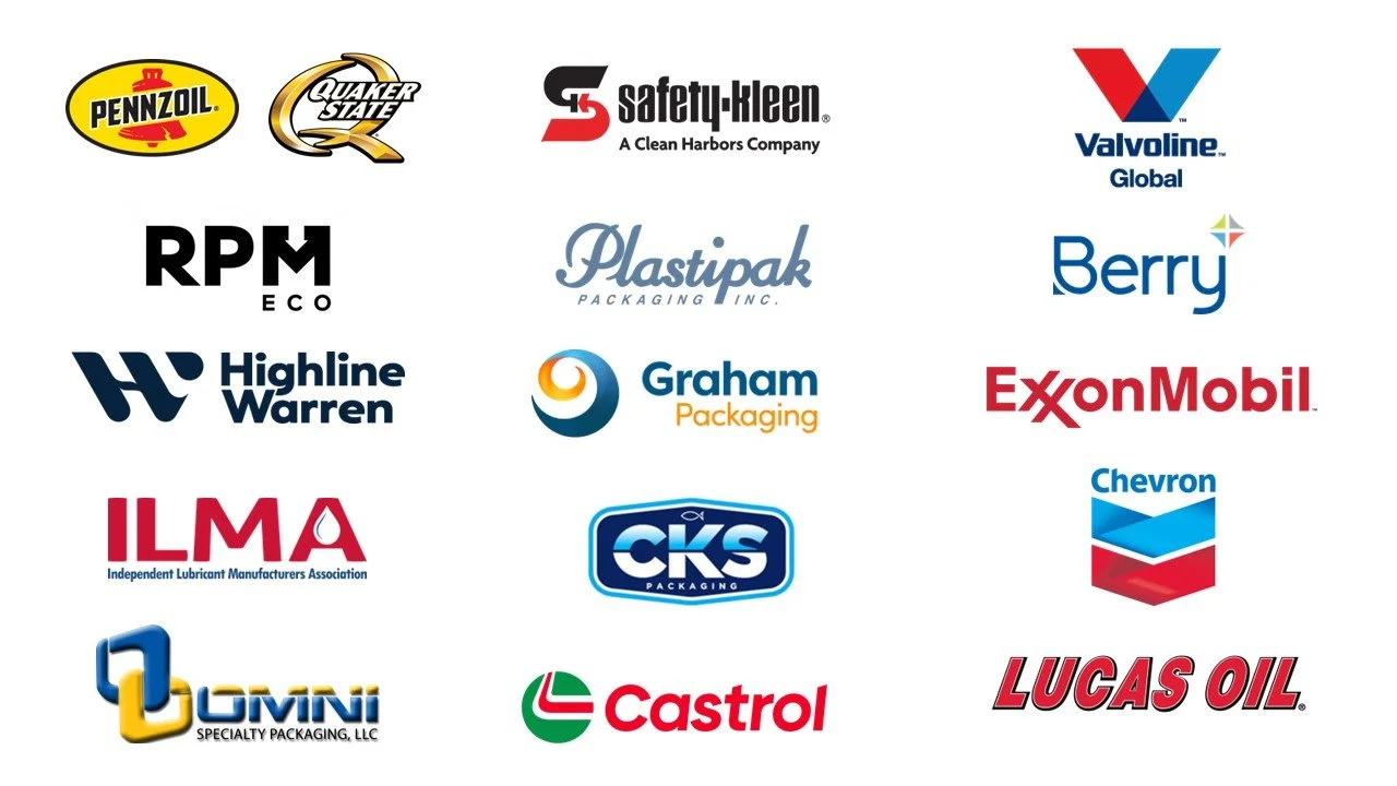 Members include Berry Global, Castrol (part of bp Group), Chevron, CKS Packaging Inc., ExxonMobil, Graham Packaging, Highline Warren, Independent Lubricant Manufacturers Association, Lucas Oil, Omni Industries, LLC, Pennzoil - Quaker State Company, Plastipak Packaging, RPM eco, Safety-Kleen, and VGP Holdings LLC (Valvoline Global).